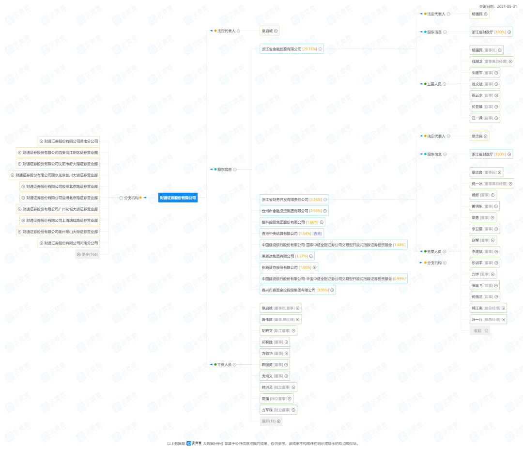 这是因为,财通证券持股29.16%的控股股东浙江省金融控股有限公司(简称:浙江金控),同时是浙商银行的股东方,持股12.57%。财通证券第二大股东实控人浙江省财务开发有限责任公司(简称:浙江财开),与浙江金控均是由浙江省财政厅全资控股。
