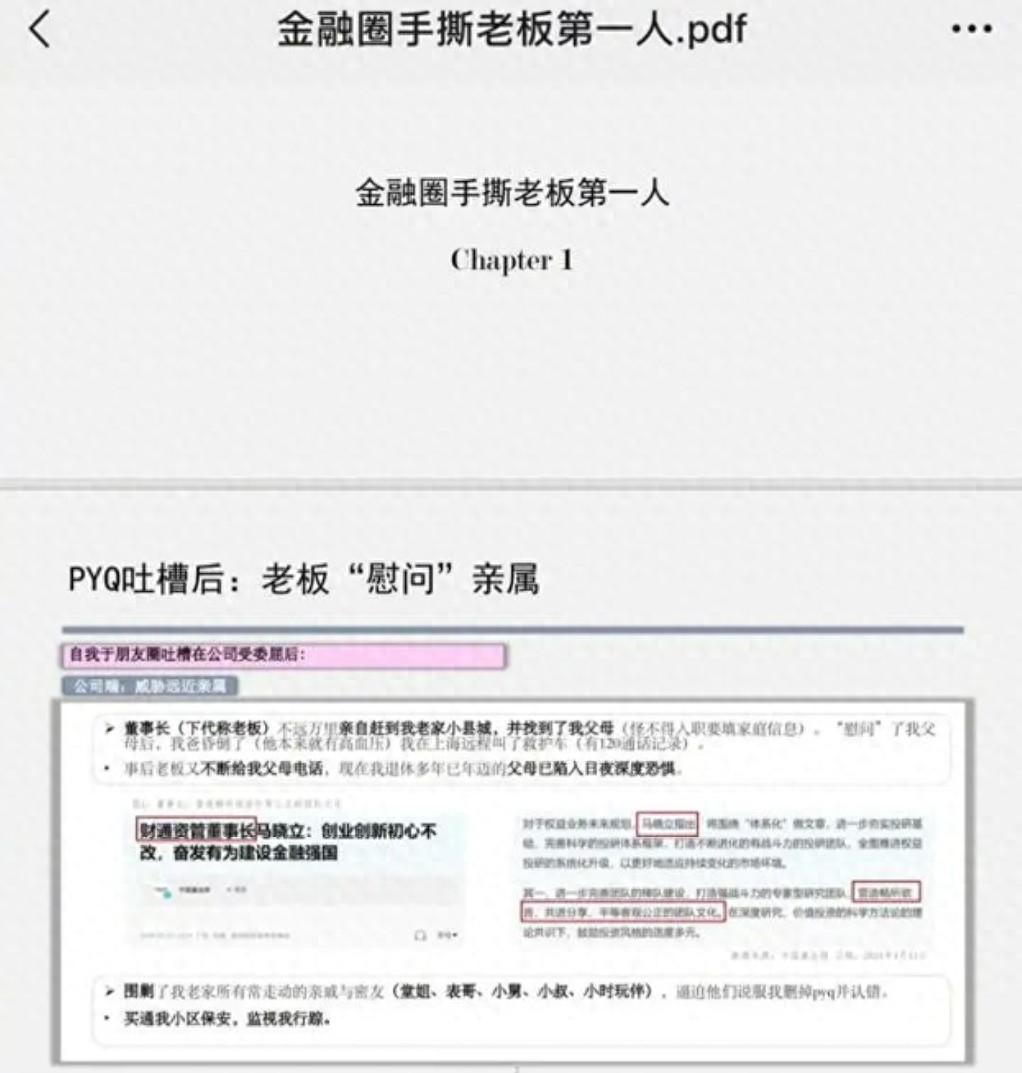 7月29日,一份名为《金融圈手撕老板第一人》的举报爆料材料在网上流传,这篇文章质疑财通证券资产管理有限公司(简称“财通证券资管”)相关领导的工作能力、员工考核不公以及高管持有过亿房产等问题。