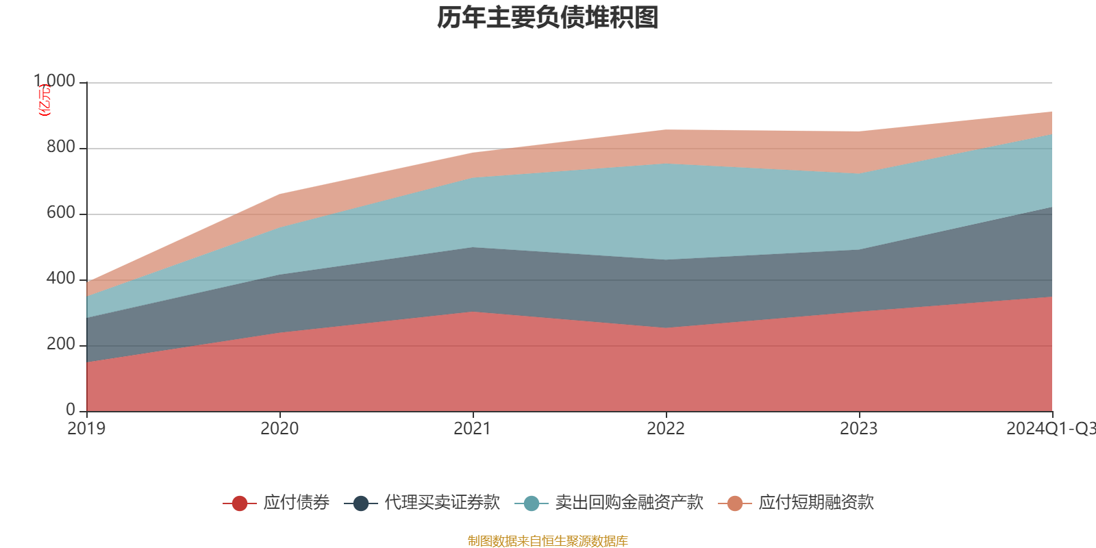 负债重大变化方面,截至2024年三季度末,公司代理买卖证券款较上年末增加44.48%,占公司总资产比重上升5.12个百分点;应付短期融资款较上年末减少46.43%,占公司总资产比重下降4.73个百分点;应付债券较上年末增加15.15%,占公司总资产比重上升1.95个百分点;卖出回购金融资产款较上年末减少4.28%,占公司总资产比重下降1.68个百分点。