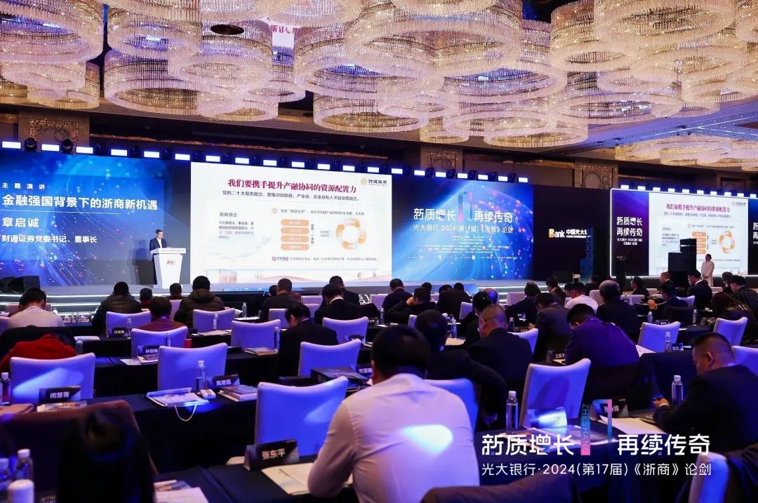 政策东风来,机遇正当时。章启诚表示,浙商与财通,要携手抢抓宏观政策新机遇。首先是金融强国的战略机遇。中央金融工作会议指出,要“加快建设金融强国”,做好科技金融、绿色金融、普惠金融、养老金融、数字金融“五篇大文章”。浙商身处金融强省建设大局,可抓住“五篇大文章”和浙江海洋金融、民间金融、开放金融“三篇特色文章”的新机遇。财通作为浙商浙企自己家的券商,将坚定沿着金融强国战略方向,服务实体经济,服务浙商浙企。其次是中国经济整体向好的新机遇。从9月份中央政治局会议到本周中央政治局会议召开,近期一揽子超预期的增量政策,推动经济持续回升向好。浙商,应主动融入国内国际两个大市场,聚焦聚力新质生产力发展,抢得发展先机。财通将为浙商浙企宣传好政策,帮助浙商浙企用好政策,为推动经济持续向好加油助力。第三是资本市场长期看好的新机遇。4月新“国九条”明确提出稳定市场预期,9月份政治局会议强调“要努力提振资本市场”,本周的政治局会议明确表示要“提高投资效益”“稳住楼市股市”,资本市场的重要性更为凸显。目前,浙江有712家A股上市企业,排名全国第二,总市值排名全国第四。财通作为首批获得互换便利操作资格的20家金融机构之一,将着力发挥好互换便利资金的撬动和引导作用,让更多的投资者了解浙股、熟悉浙股、投资浙股,助力浙商浙股估值提升和高质量发展。