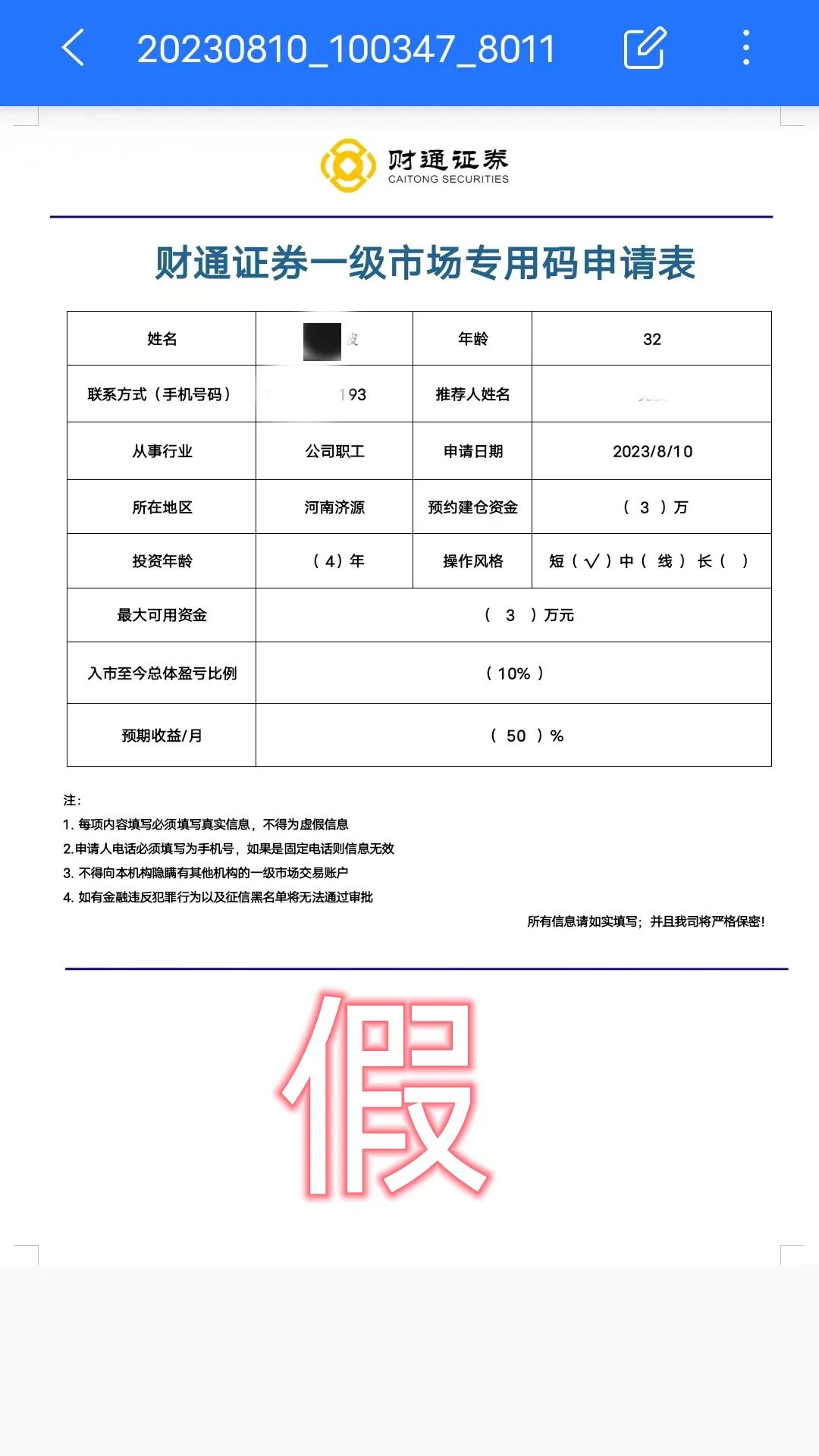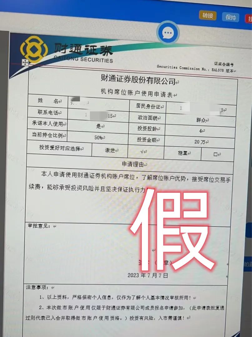 年关将至,公司95336热线收到多位投资者反馈,不法分子以公司以及员工名义通过抖音、快手、视频号、小红书等平台进行股票投资直播,诱导投资者加群后,开通一级账户/机构子账户/资管账户,下载假冒财通证券的交易软件,进行大宗交易、协议交易等形式优先打板、打新获取高额收益骗取投资者转入资金投资,之后又以券商被监管处罚或需要缴纳收益红利的理由要求投资者进一步转入资金,最终投资者被拉黑,造成较大资金损失。为保护投资者的合法权益、维护金融市场秩序、维护财通证券声誉,财通证券郑重提醒广大投资者提高对不法人员的识别能力,积极保护自身财产安全。
