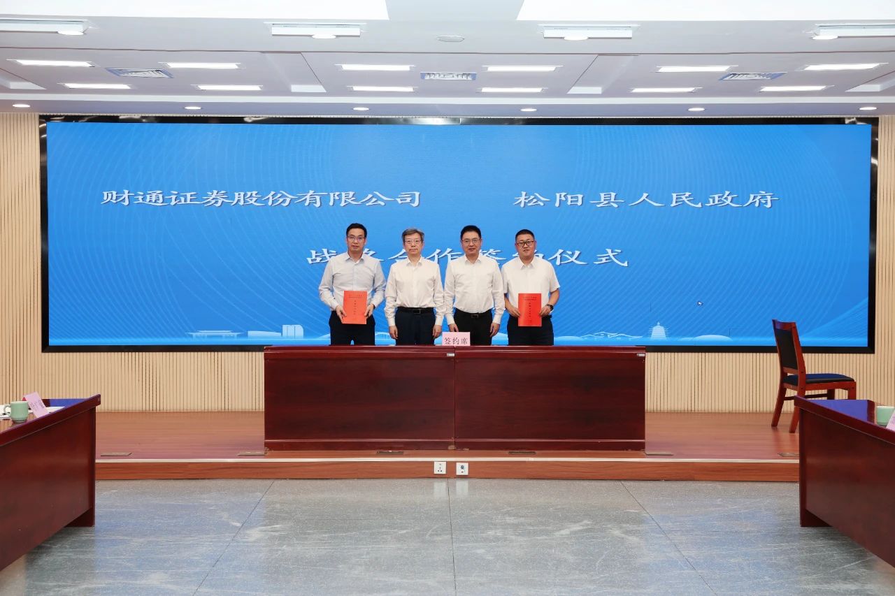 6月4日下午,财通证券与丽水市松阳县人民政府签署战略合作协议。财通证券党委书记、董事长章启诚,松阳县委书记梁海刚出席签约仪式并讲话,财通证券党委委员、监事会主席叶笃银与松阳县委副书记、县长李宣代表双方签署战略合作协议。财通证券董事会秘书兼财通资本董事长官勇华,总部相关部门及丽水分公司负责人参加。