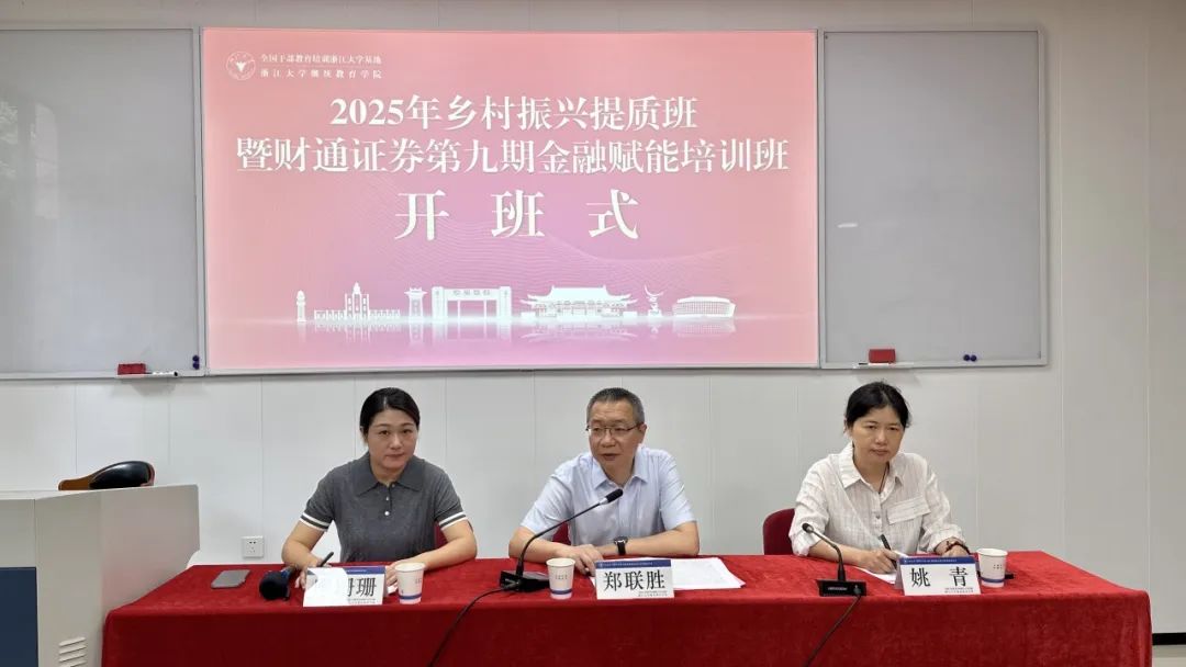 为贯彻落实《中共中央国务院关于学习运用“千村示范、万村整治”工程经验有力有效推进乡村全面振兴的意见》精神,进一步提升帮扶地区干部的金融知识水平和乡村振兴能力,财通证券于6月23日至6月27日在浙江大学继续教育学院举办2025年乡村振兴提质班暨财通证券第九期“党建+金融”赋能培训班,来自甘肃、四川、江西、云南、浙江等地的100余名学员齐聚浙江大学华家池校区,共同学习县域经济发展经验,探索乡村振兴新路径。财通证券党委副书记、工会主席郑联胜出席开班仪式并作讲话。