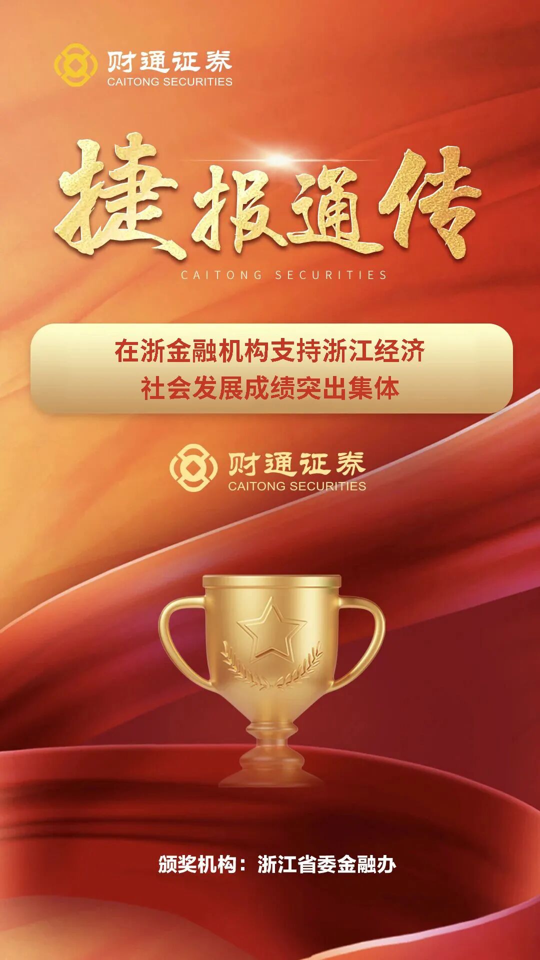 日前,浙江省委金融办通报了“2024年度在浙金融机构支持浙江经济社会发展成绩突出集体”名单,财通证券上榜。该奖项是对金融机构支持浙江经济社会发展方面的综合评价,是省委金融办颁发的富有含金量的荣誉。这也是财通证券第八年获得在浙金融机构支持浙江经济社会发展相关奖项。此次上榜,是对财通证券服务浙商浙企专业能力的肯定。财通证券围绕浙江省委、省政府“132”总体部署,持续深化“科创型、服务型、平台型、变革型”四型财通建设,不断提升“选择财通财运亨通”的品牌贡献度与辨识。