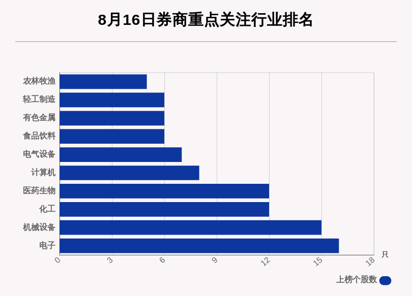 从券商对行业的关注度来看,券商关注个股数居前的行业分别是电子、机械设备、化工。