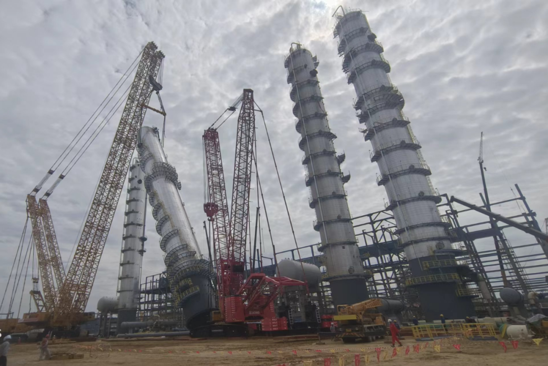 近日,由中国化学七公司山东裕龙石化项目千吨级设备丙烯塔Ⅰ(C-105)一次吊装成功,为项目千吨级设备吊装工作画上了圆满句号。