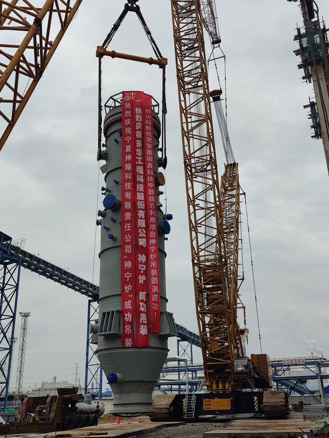 近日,由中国化学东华公司总承包的安徽碳鑫科技甲醇综合利用项目气化装置核心设备气化炉一次性吊装就位。