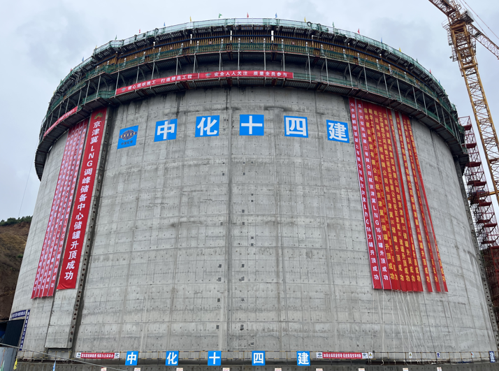 近日,十四公司总承包的京津冀LNG调峰储备中心项目107B储罐升顶成功。