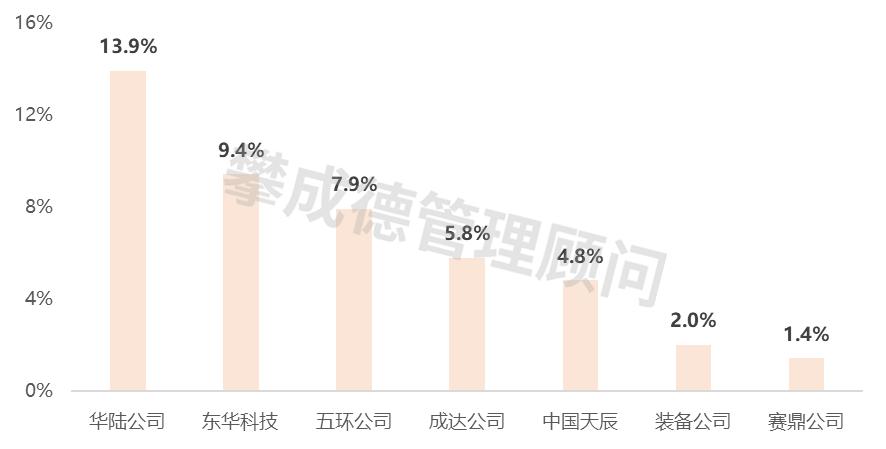 华陆公司的净资产收益率超过10%,达到13.9%;排行第二的是东华科技,达到9.4%;第三为五环公司,净资产收益率为7.9%。