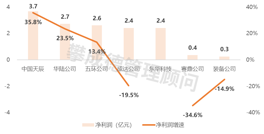 中国天辰以3.7亿元的净利润位列第一;华陆公司排第二,净利润2.7亿元;五环公司排第三,净利润2.6亿元;成达公司和东华科技的净利润接近,二者仅相差7万元。