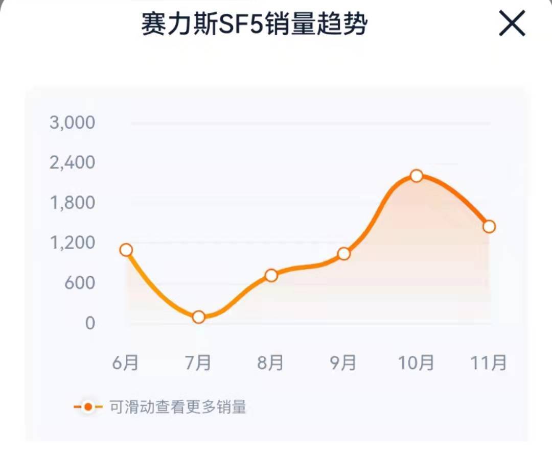 汽车之家数据显示,2021年4月至11月,赛力斯SF5销量分别为129辆、204辆、1097辆、94辆、715辆、1040辆、2205辆、1446辆,累计销量6930辆。据多家媒体报道,华为消费者业务对内定下了2022年销售30万辆的目标。目前来看,实现这一目标任重道远。