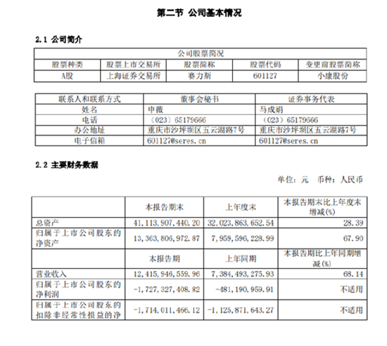 8月19日,赛力斯(原小康股份)已公布上半年财报。