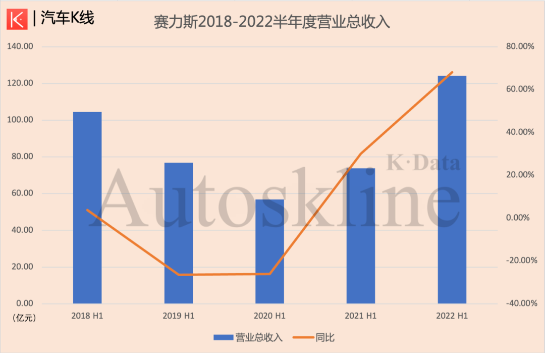 财报显示,赛力斯2022上半年营业总收入创下历史新高,同比上涨68.14%达到124.16亿元,实现三连涨,几乎赶上造车新势力三强之首小鹏汽车。