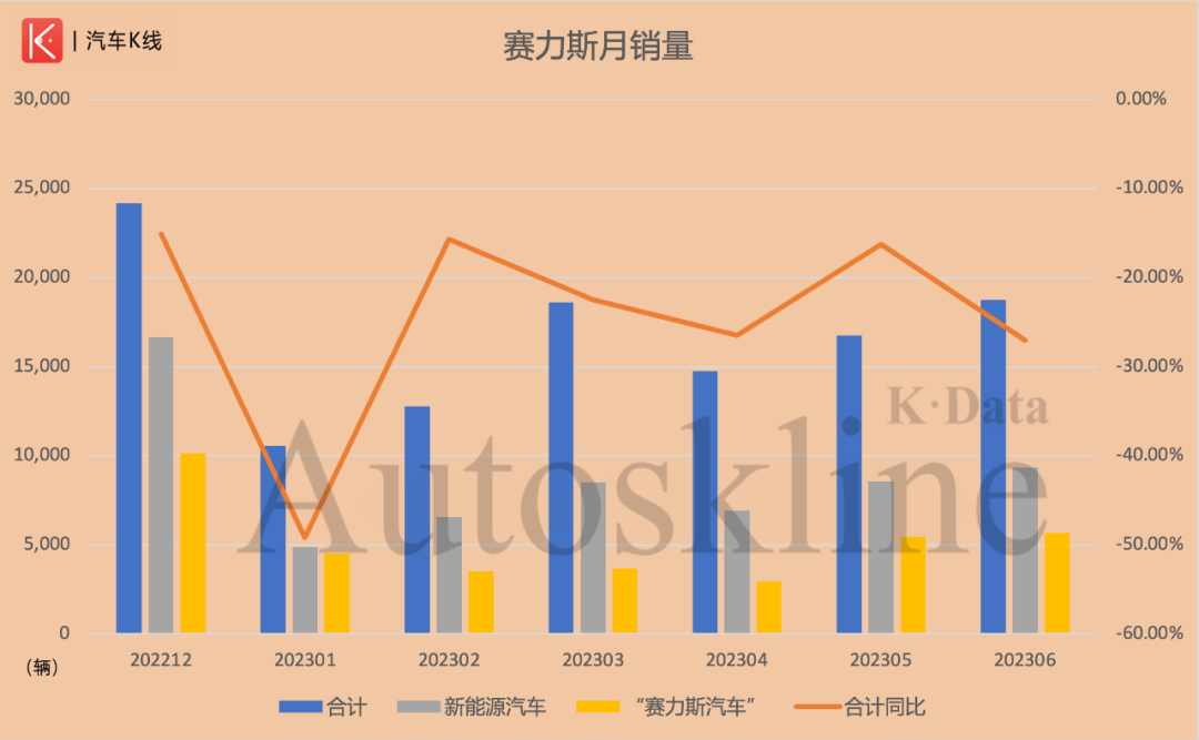 营收下滑的同时,赛力斯的销售情况也仍然处于萎缩状态。
