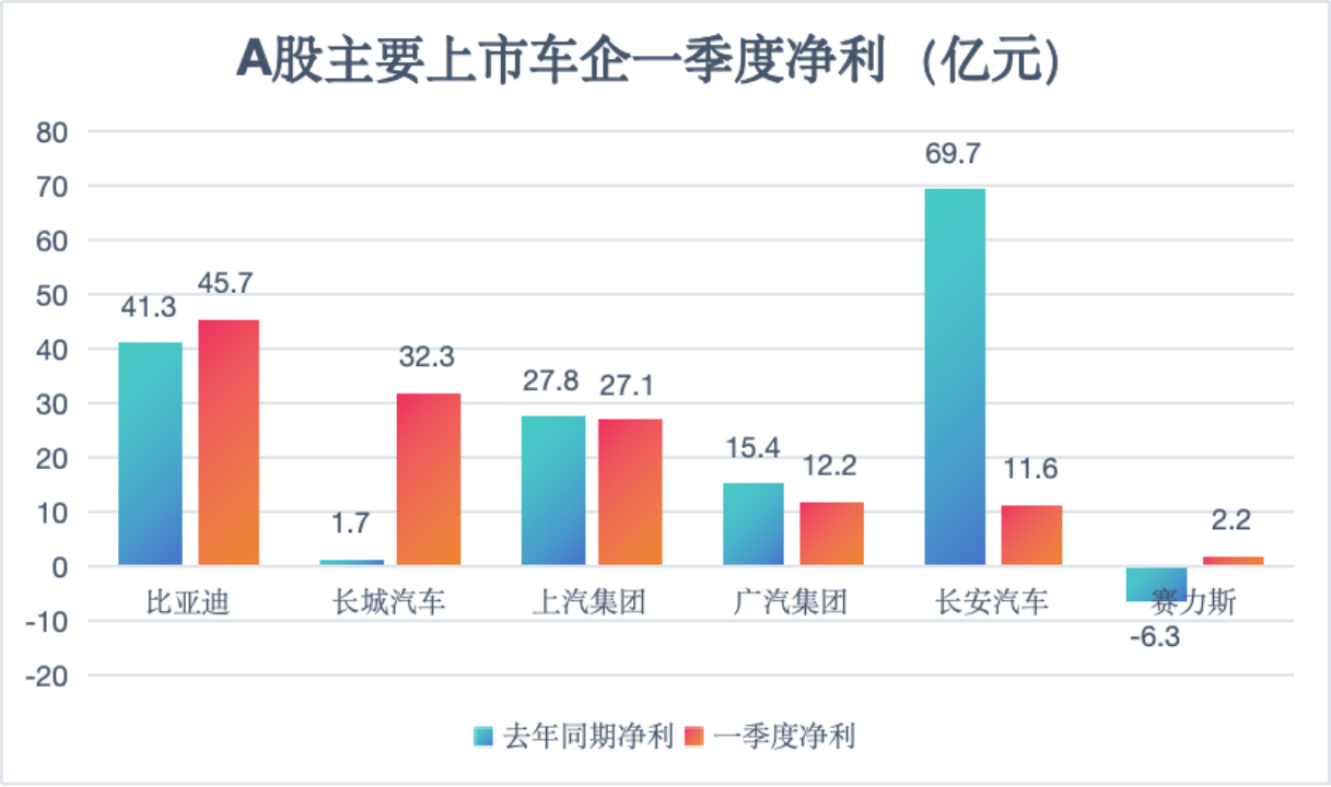 比亚迪等A股上市车企销量的增长也对其业绩带来持续利好。综合6家A股上市车企一季度业绩数据,比亚迪、长城汽车两家民营上市企业实现营收、利润大幅增长,赛力斯甚至实现扭亏为盈。民营车企呈现出了更强的生命力。