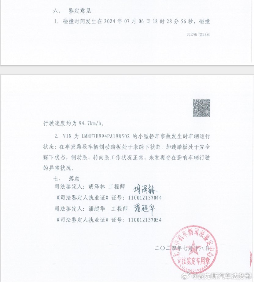 赛力斯表示,公司没有对行车记录仪数据和事故报告数据进行任何删除、修改。目前案件已经进入司法程序,事实认定应以法院查明为准。公司始终以用户安全为底线,在法院查明事实之前,呼吁大家不要捏造并散布不实信息。公司也将采取一切法律手段,依法维护自身的合法权益。