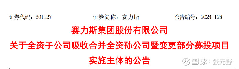 (2)2024-08-09,赛力斯发布公告,公司拟使用自筹资金约13.29亿元收购金新基金持有的赛力斯汽车19.355%股权。本次交易完成后,公司对赛力斯汽车的持股比例由80.645%增加至100%,公司合并报表范围不会发生变化。