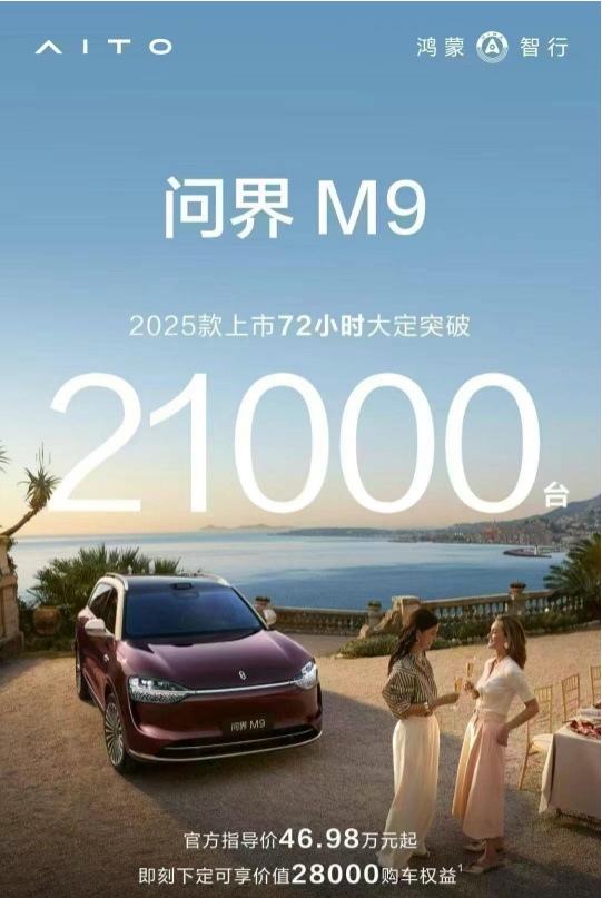 近期,问界M9 2025款正式上市,72小时大定已突破21000台,充分印证了问界品牌净推荐值(NPS)达88.4%、品牌发展信心指数稳居前列、单车成交均价行业最高三项行业第一的含金量。问界品牌之所以获得市场认可用户喜爱,离不开华为在智能化上的赋能,也离不开赛力斯在电动化上的领先技术。