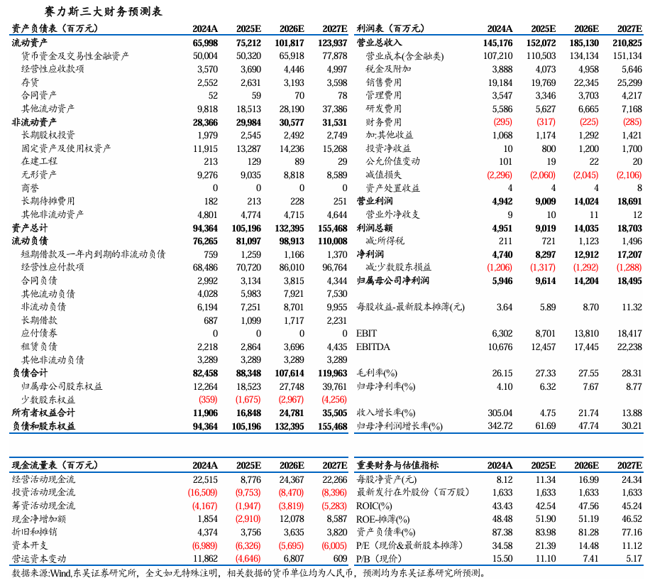 公司拟发行境外上市外资股股票并在联交所主板挂牌上市,融资规模/上市时间点未确定,我们预计9-12个月完成。H股上市可深入推进全球化战略布局,打造国际化资本运作平台,提高综合竞争力。引望10%股权完成过户。赛力斯汽车已向交易对方支付完毕第一期股权转让款23亿元、第二期股权转让款57.50亿元,标的公司10.00%股权已登记至赛力斯汽车名下。根据华为年报,华为智能汽车解决方案业务2024年营收为263.53亿元。预计在25Q2起为公司贡献投资收益。