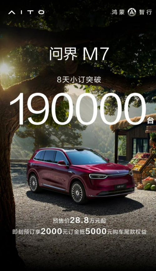 全新问界M7市场行情可谓火爆,8天小定量已突破19万,展现出极强的市场号召力。用户追捧的背后是全新问界M7非凡的产品竞争力,在赛力斯魔方技术平台的领先技术赋能下,其具备可轻松应对12种复杂越野路况脱困能力,兼顾豪华舒适与精准操控,驾驶质感实现全面跃升。