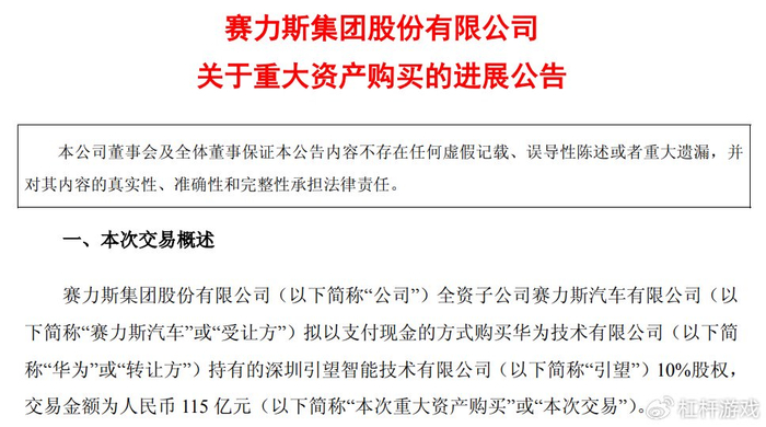 此前的3月,赛力斯已完成了对引望的股权过户,且早在2024年8月就披露过收购一事,这次是向公众披露所有款项已支付完毕。