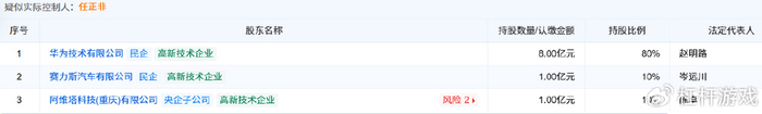目前引望的股权构成为华为持股80%,阿维塔科技与赛力斯汽车各持股10%。