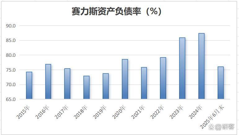 赛力斯资产负债率长期维持在高位,2024年末超过87%,今年6月末总负债859亿元,负债率有所压降至76%。