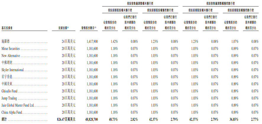 赛力斯的基石投资者为重庆产业母基金、林园基金及华泰资本投资(与华泰背对背总回报掉期及林园总回报掉期有关)、广发基金管理有限公司及广发国际资产管理有限公司(统称为“广发基金”)、New China Asset Management、BESS Broadway、Sanhua (Hong Kong)、中升、Zhink International、Gold Wings、达安投资、Hichain Logistics HK、施罗德、Mirae Securities、New Alternative、中邮理财、Skyler International、星宇香港、中国美东、Ghisallo Fund、Jump Trading、Jain Global Master Fund Ltd、China Alpha Fund。