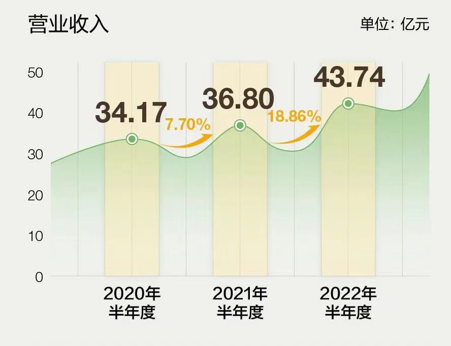 经营业绩方面,2022年1-6月,常熟银行实现营业收入43.74亿元,同比增长18.86%;常熟银行微信公众号同时发布了长图显示,常熟银行2021年半年度营收为36.80亿元,实现7.70%的增速,2022年上半年则实现了首个半年度营收超过40亿元,达到了43.74亿元,同时增速超过了去年同期两倍,接近19%。
