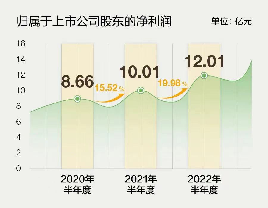 同时,今年上半年实现了归母净利润12.01亿元,同比增长19.98%。增速相比于去年同期同样有了较大提升。