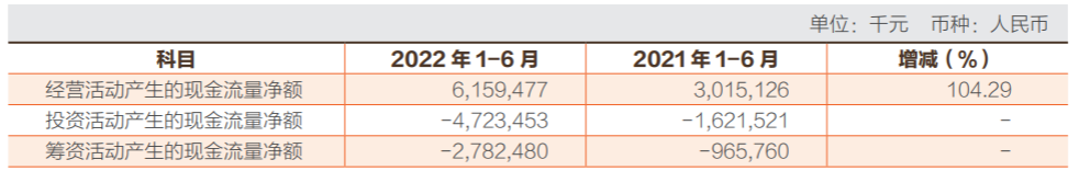 2022年1-6月,常熟银行投资活动产生的现金流量净额为-47.23亿元,筹资活动产生的现金流量净额为-27.82亿元。
