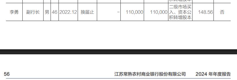 据常熟银行2024年年报,李勇2024年所获薪酬为148.56万元。