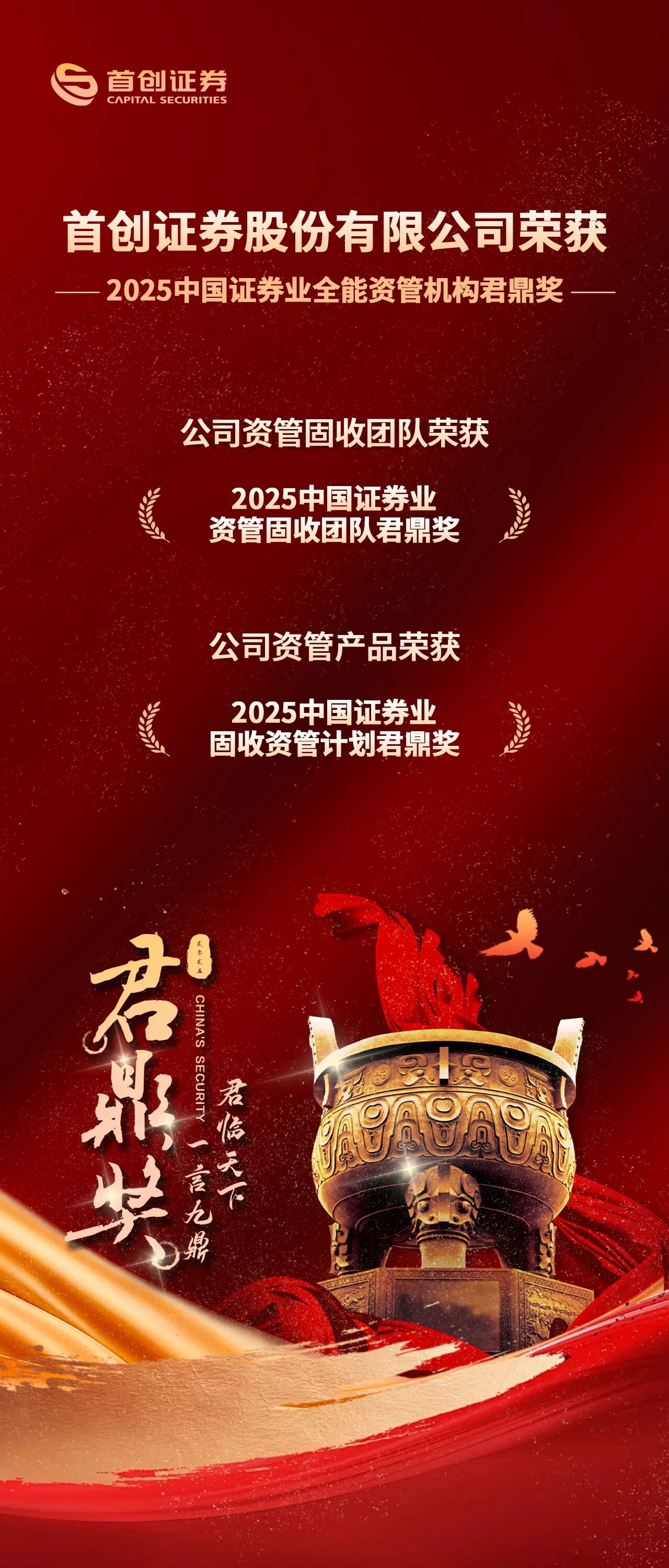 11月19日,2025中国金融机构年会的重要组成部分2025中国证券业资产管理高峰论坛在深圳召开,“2025中国证券业资产管理君鼎奖”评选结果揭晓。公司荣获2025中国证券业全能资管机构君鼎奖,公司资管固收团队荣获2025中国证券业资管固收团队君鼎奖,公司资管产品荣获2025中国证券业固收资管计划君鼎奖。