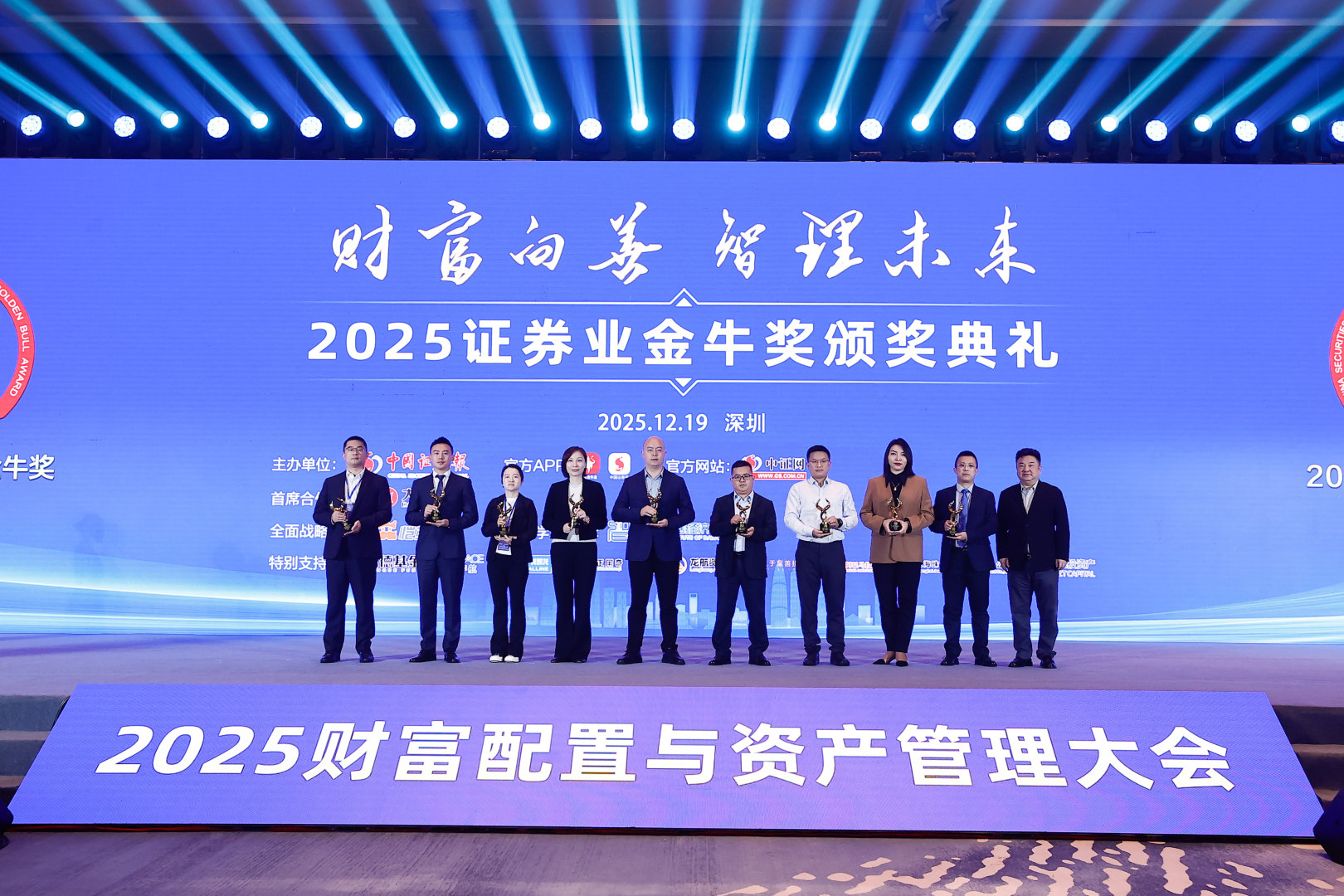 2025年12月19日,中国证券报主办的2025财富配置与资产管理大会暨证券业(分析师与证券营业部)金牛奖颁奖典礼在深圳隆重举办,首创证券石家庄中山东路证券营业部斩获“金牛成长营业部”大奖。河北分公司总经理王志文、河北分公司总经理助理兼中山东路营业部总经理郑浩洁参加颁奖典礼。