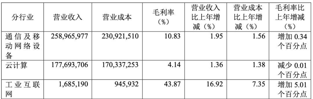初步计算,工业富联的工业互联网业务在营收中的占比仅为0.38%,但其工业互联网业务的毛利率较高,为43.87%,且同比增长了5.01个百分点。