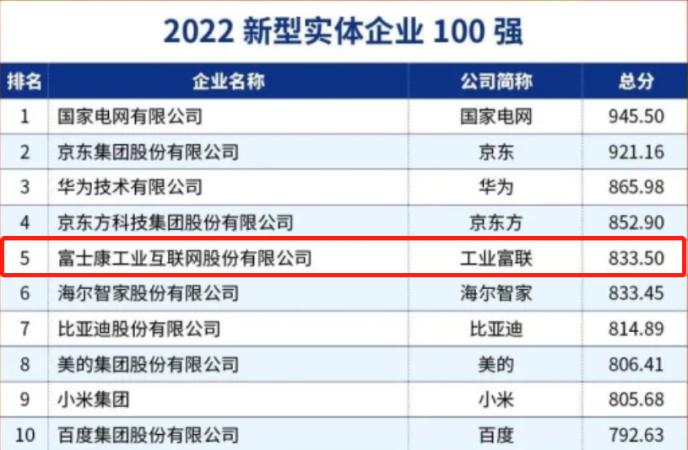 11月27日,在2022中国企业家博鳌论坛上,中国企业评价协会发布2022新型实体企业100强榜单,国家电网、京东、华为、京东方、工业富联位居前五。
