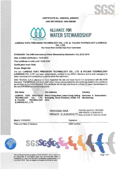 近日,工业富联旗下兰考园区顺利通过全球领先的独立第三方认证机构SGS审核,取得AWS(国际可持续水管理联盟)“黄金级”认证证书,这是工业富联在可持续水资源管理方面获得的首张全球认证,也是河南省第一家获得AWS“黄金级别”认证的工厂。