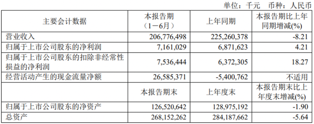 工业富联今年上半年实现营业收入2067.76亿元,同比减少8.21%;实现归母净利润71.61亿元,同比增长4.21%