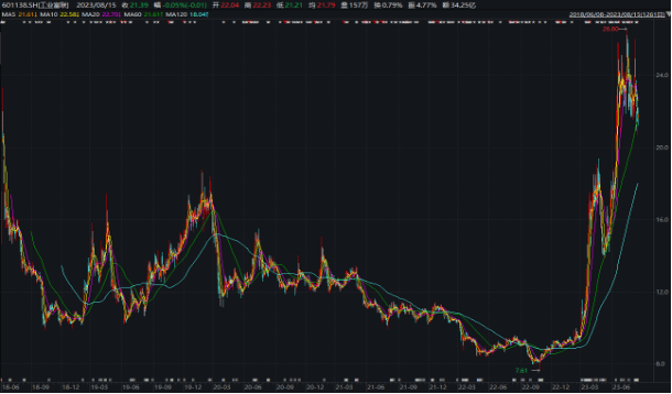 收益于AI市场的火热,表现在二级市场上,今年以来工业富联迎来了一波股价上涨行情。数据显示,从年初至今,该公司股价最高涨到了26.60元/股。此后该股稍有回落,截至8月15日收盘,公司股价收于21.39元/股,当前总市值为4249.43亿元。