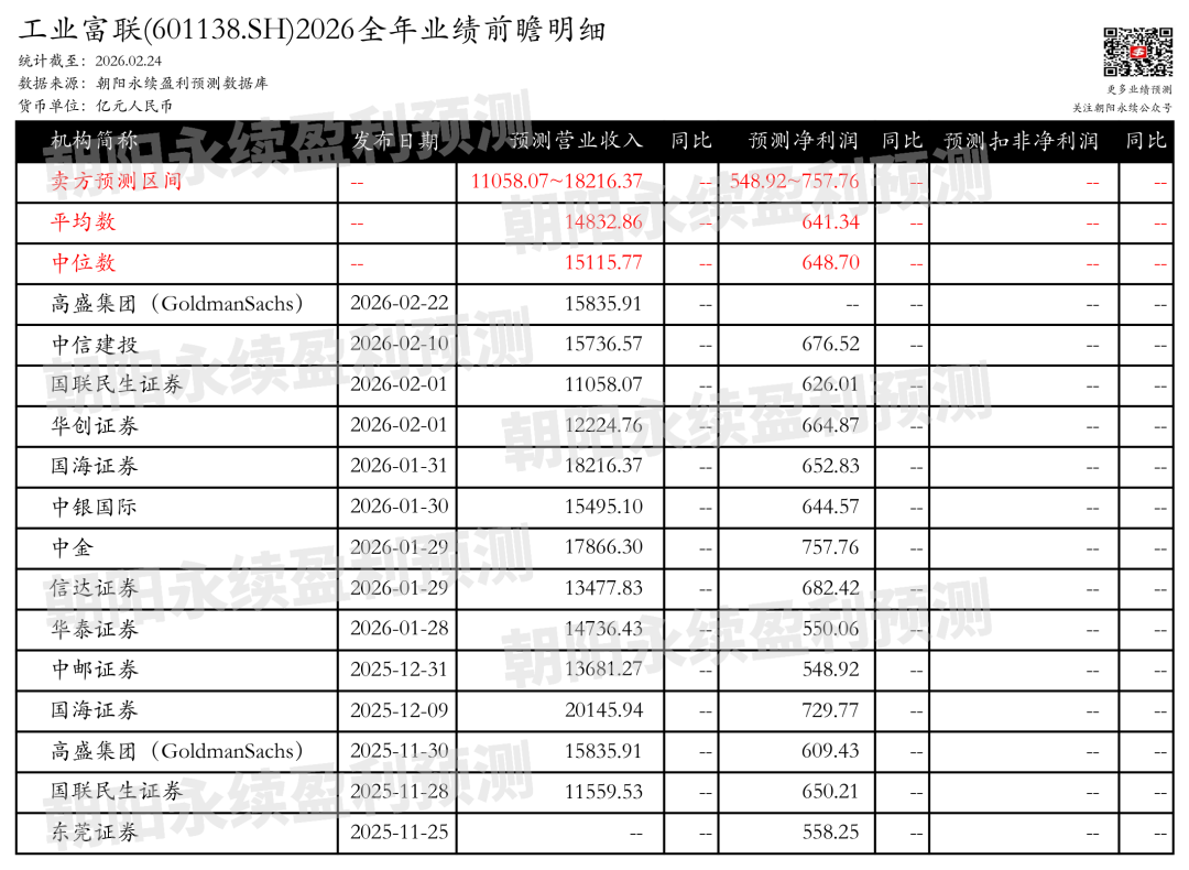 截至2026年02月24日,根据朝阳永续季度业绩前瞻数据: