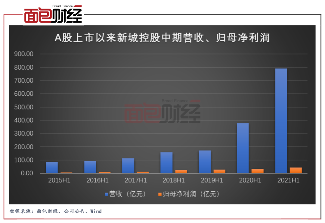 新城控股近日披露了一份颇为靓丽的半年报。数据显示,公司报告期内分别实现营收、归母净利润791.05亿元和43.06亿元,两者均创上市以来新高。