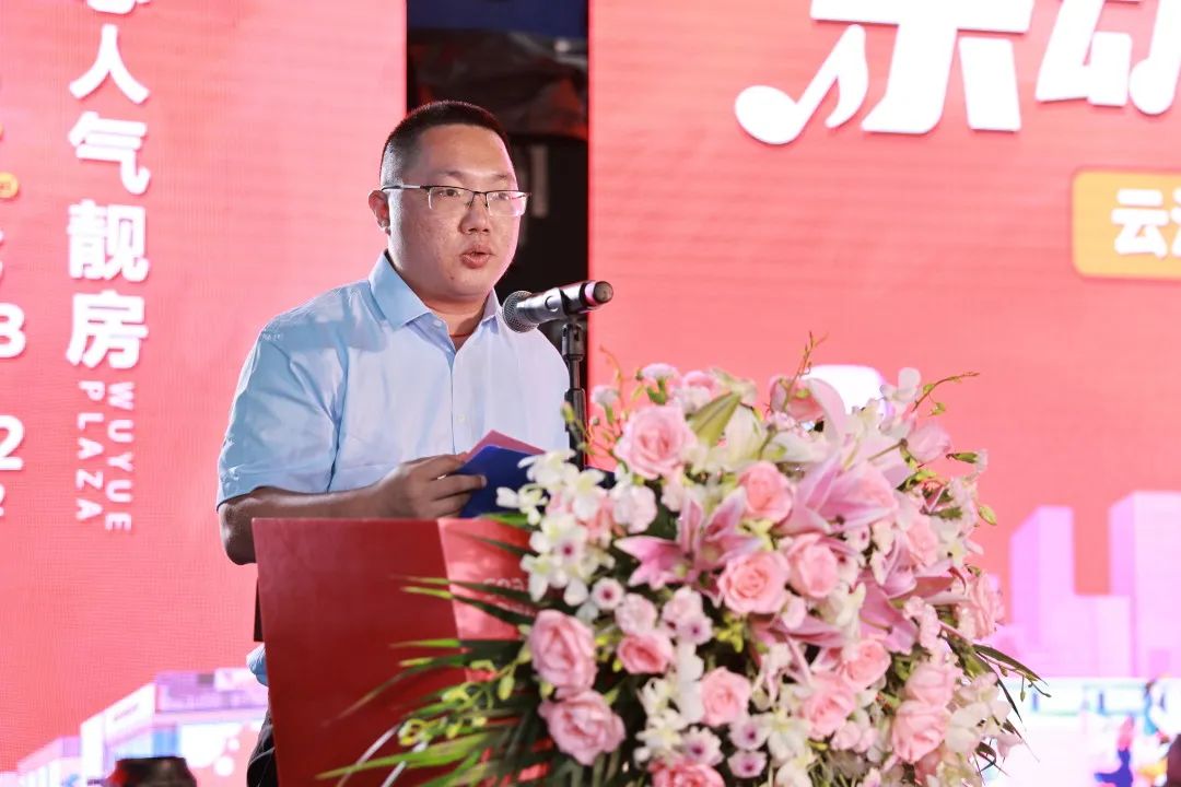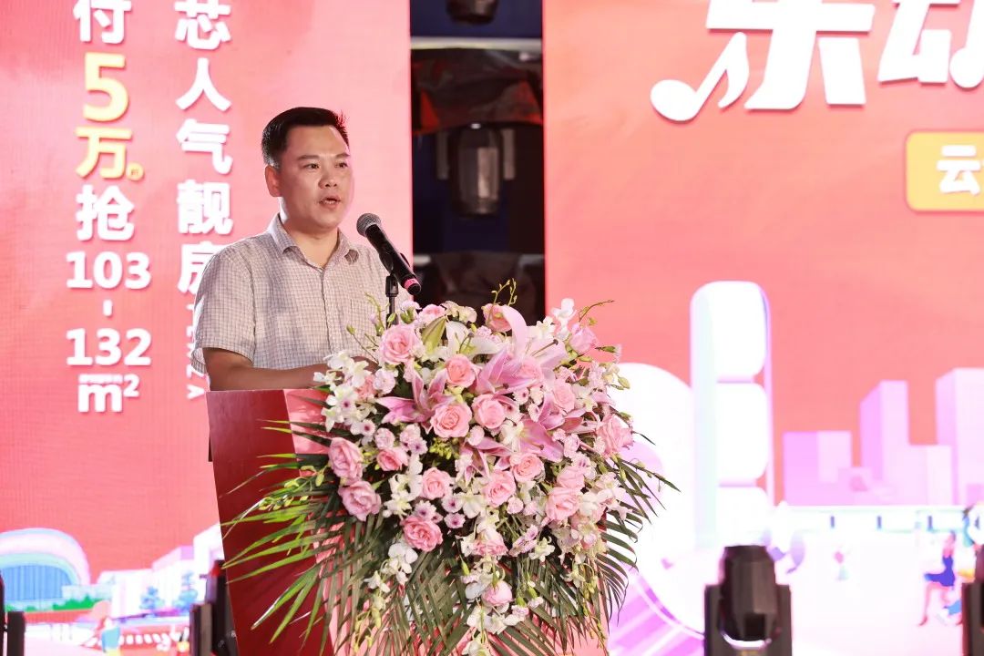 最后,在热烈的掌声中,云浮市商务局副局长黎俊杰先生上台致辞,为云浮吾悦广场开业倒计时一周年送上了祝福,同时期待云浮吾悦广场2023年6月30日盛大开业后,促进区域商业繁华,带动区域经济发展,丰富市民的消费体验和生活体验,成为我市一张靓丽的名片。
