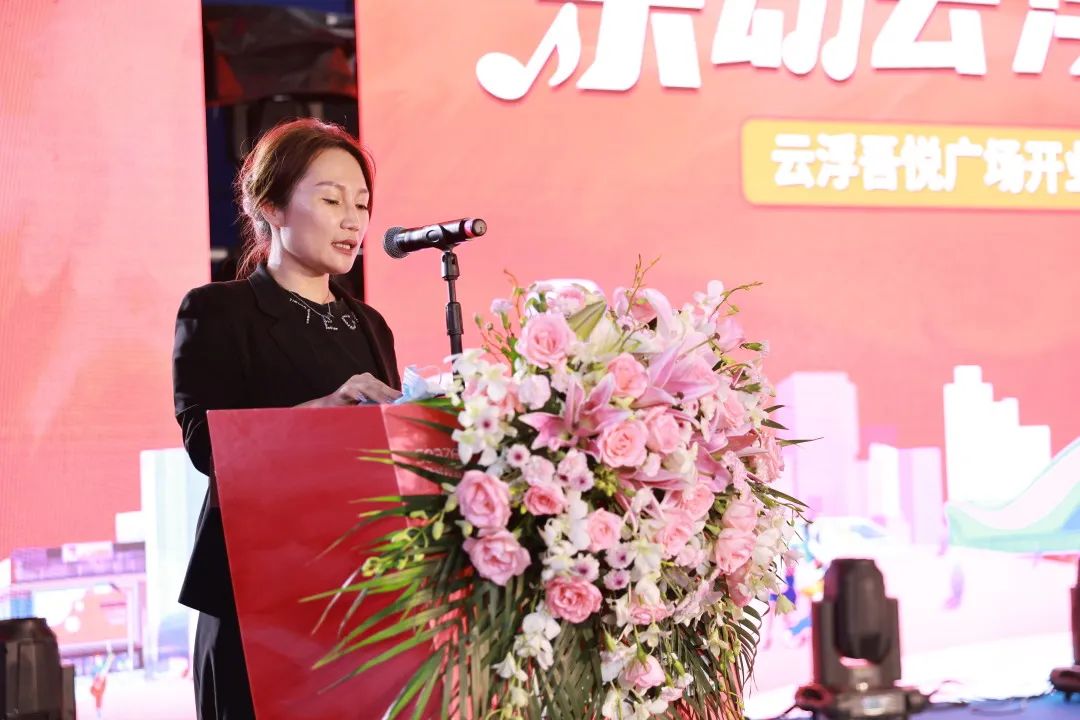 随后,新城控股集团云浮吾悦广场总经理梁小燕女士登台发表精彩致辞,对出席本次云浮吾悦广场开业倒计时一周年的领导嘉宾朋友们表示了衷心的感谢,同时对项目现阶段进度以及未来规划进行了详细解读,并表示云浮吾悦广场将于2023年6月30日精彩开业,届时云浮吾悦将成为云浮繁华新地标,消费新中芯,为云浮开启繁华新章,给市民朋友们带来最时尚潮流、最高端的都市消费生活体验。