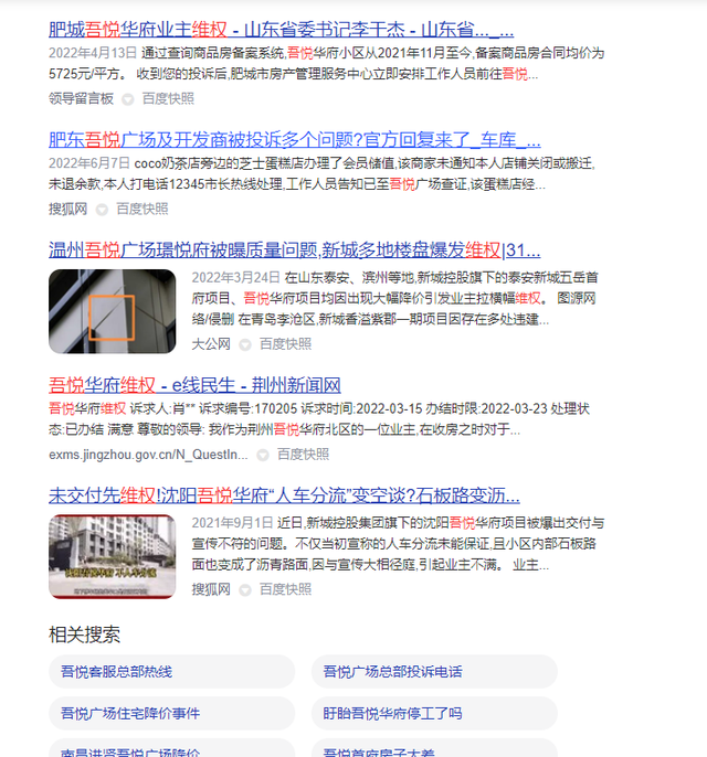 通过搜索引擎搜索发现,全国多地多处吾悦广场或吾悦华府也有相关投诉。