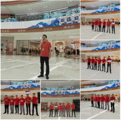 本次大赛由新城控股集团宝鸡吾悦广场工程部、商场物业部联合参赛,共分为5个队伍进行比拼,每个队伍用响亮的口号与积极向上的精神面貌展示出了全力拼搏的决心。大赛共设置五个环节项目:队列动作、消防战斗服穿戴和消防水带抛接、围栏玻璃刮洗、风机盘管安装、专业知识竞答。