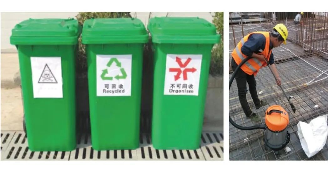 施工现场的废弃物存放处均有明确标识;机械维修废损零件、电焊条、编织袋、废纸等垃圾实现集中回收,减少浪费;生活垃圾遵循分类处理,为生态保护贡献力量。