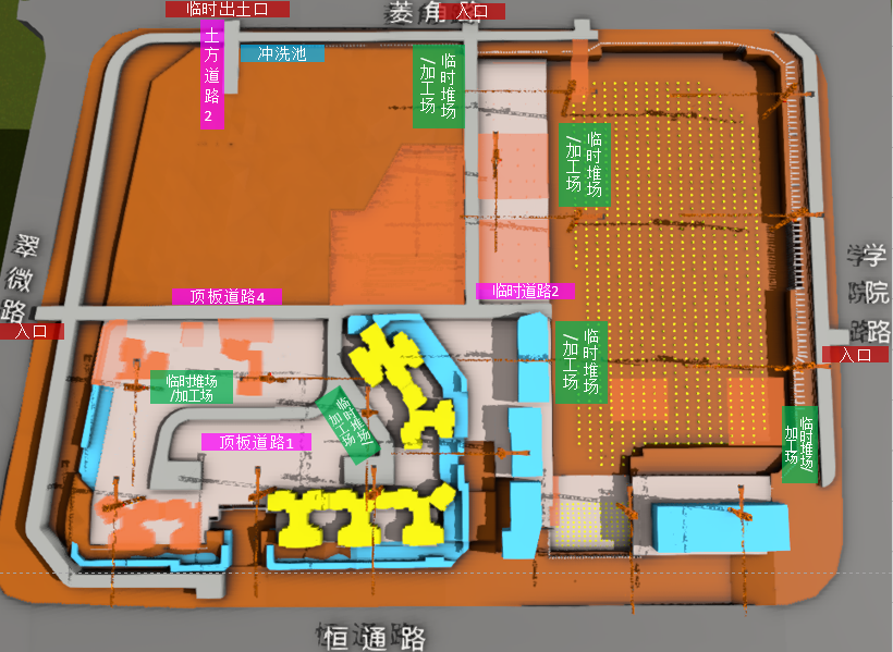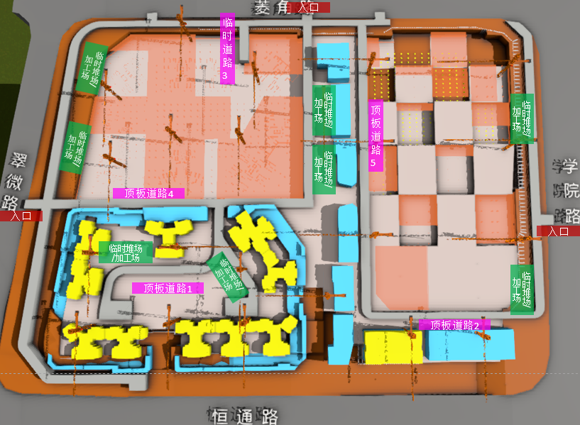 全周期场布动态模拟及任意时刻的场地布置,实现了对复杂场地的精准动态策划。
