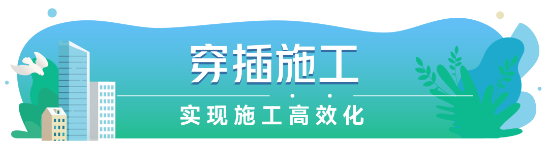 为实现节地与土地资源保护,全面提升建造的质量和效率,新城积极推行商业建筑穿插作业模式,即在底板施工完成后,将二次结构、机电、外装、内装、外场市政等分项工程提前插入施工,统筹管理施工相关要素和环节,从而提升施工现场精细化管理水平。配合穿插施工,新城同时科学、动态地布置施工场地,合理规划临时用地,减少资源消耗与浪费。