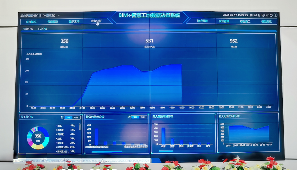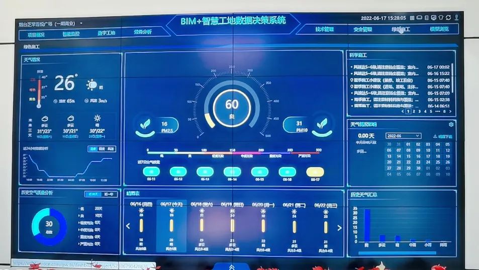 目前,“BIM+智慧工地数据决策系统”已在烟台芝罘吾悦广场项目试点实施,该项目于2022年1月被授予“安全生产标杆工地”,成为智慧工地的范本。