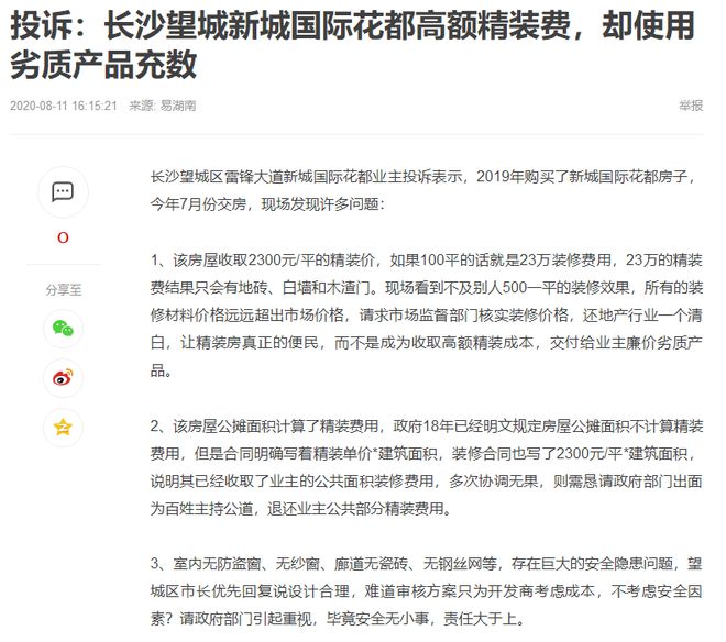 其实在当下房地产行业面临激烈变革之际,城市住房需要的不仅仅是发展,更是“高质量”发展。只有产品质量过硬才能在竞争中取得一席之位。希望新城在长沙,能提高产品质量,重视产品质量,给新城业主交一份满意的答卷。